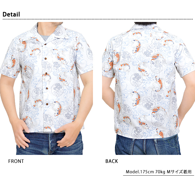 味わい深い物作りをされている衣櫻さんから、コットンアロハシャツ「跳ね鯉」(SA-1462)のご紹介です。 和柄の鉄板柄である跳ね鯉のシャツが登場しました。 ボディーには、南十字星をイメージして織られたサザンクロス生地を採用。 1枚で着るのはもちろん、汗ばむ季節にTシャツやタンクトップの上からさらりと前開きで羽織るも良し。 ※この製品は1枚ずつすべて色柄出しが異なります。 | |||||||||||||||||||||||||