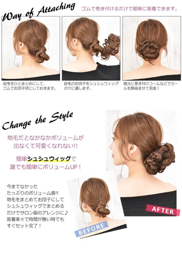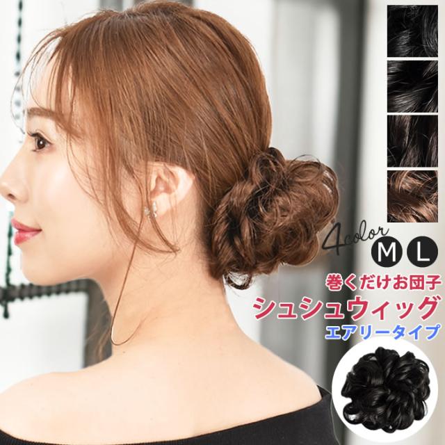 ウィッグ ゆうメール便送料無料 ポイントウィッグ 自然 普段使い お団子ウィッグ ヘアゴム シュシュ つけ毛 耐熱 お団子シュシュウィッグ エアリータイプ