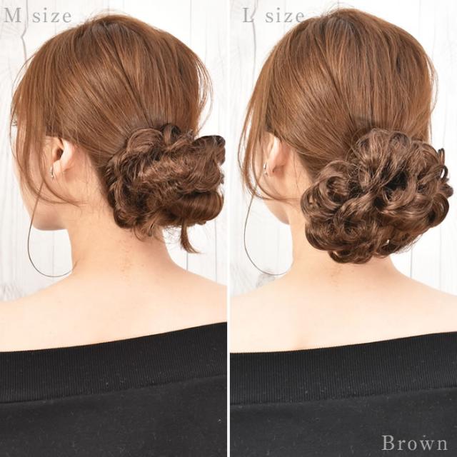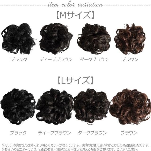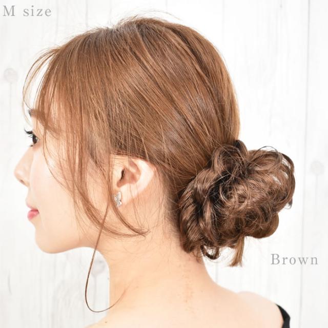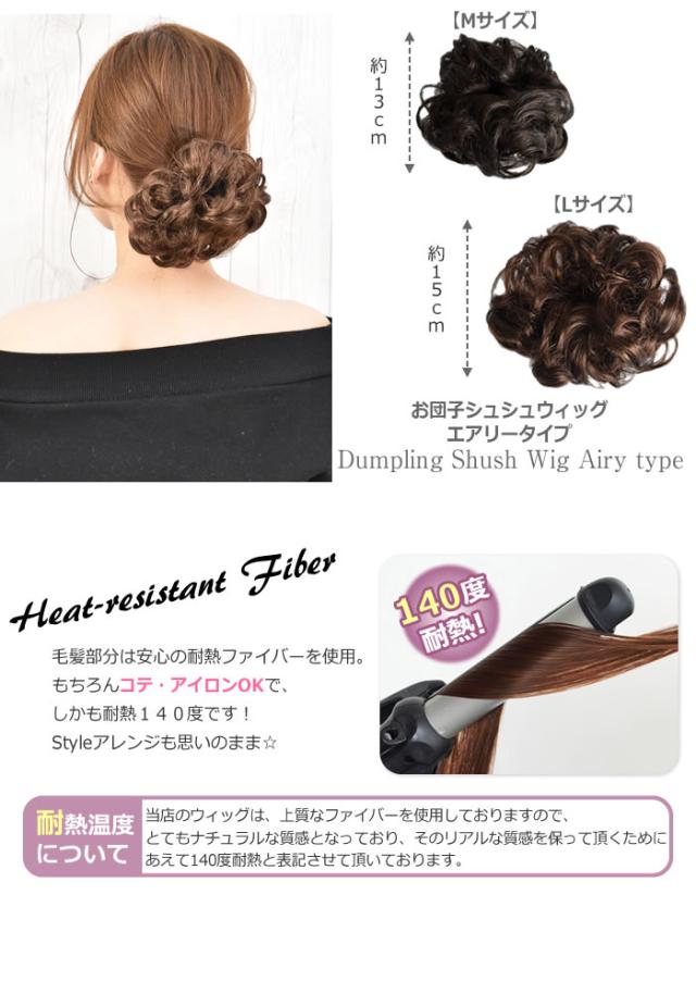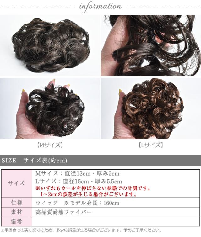 | 商品説明 | 自毛で作ったお団子に、シュシュのようにはめるだけで簡単にボリュームのあるスタイルが完成するウィッグです。伸縮性のあるゴム素材でできているので、ヘアゴム感覚で簡単にサッと使えます♪ボリュームによって選べるMサイズとLサイズをご用意しております。まとまりのある小さ目のお団子にはMサイズ、ふんわりとボリュームが欲しい時にはLサイズがオススメ。お子様の発表会などにも使いやすいです。自然な髪質の耐熱ファイバーを使用しているので、自毛に馴染みやすいのが特徴です。エアリーなくるんとしたカールが特徴で、重ね付けしてボリュームアップさせるのも◎ |