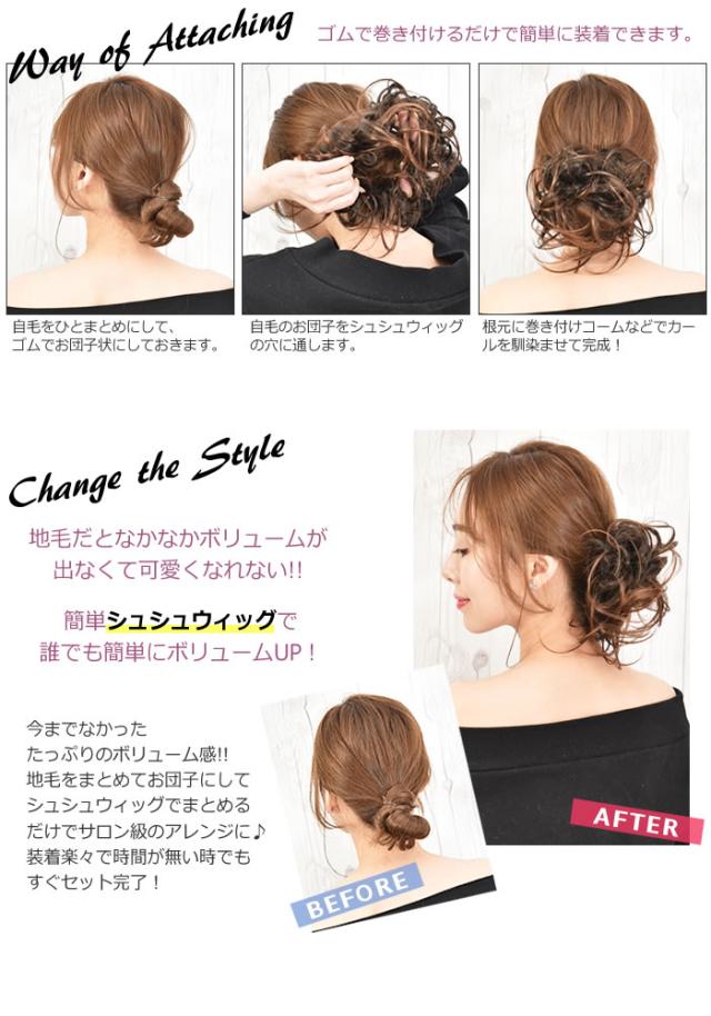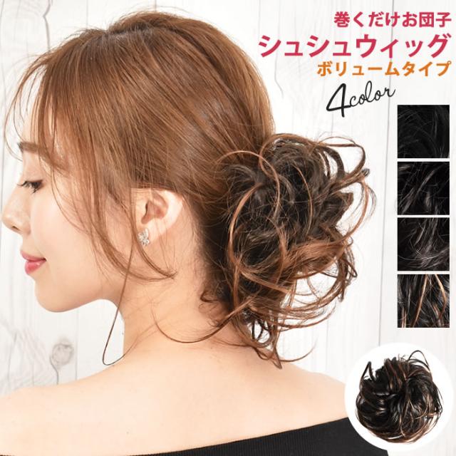 ウィッグ ゆうメール便送料無料 ポイントウィッグ 自然 普段使い お団子ウィッグ ヘアゴム シュシュ つけ毛 耐熱 お団子シュシュウィッグ ボリュームタイプ