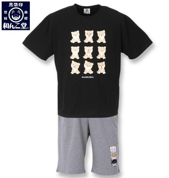 大きいサイズ 黒柴印和んこ堂 天竺半袖Tシャツ+ミニ裏毛ハーフパンツ ブラック×グレー 3L 4L 5L 6L 8L/1258-2244-2-49
