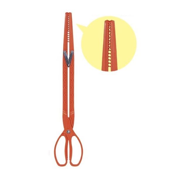 トングタイプのロングフィッシュグリップ。全長が約52cmと長くカニなどのツメが当たる心配もありません。つかみ部分はギザ形状。グリップするのでウナギなどのヌメリのある魚でもしっかりつかめます。持ち手は指を入れて操作しやすいハサミ形状。魚・貝・カニ・ウニ・タコなどを安全にキャッチ。また、釣り場のゴミ拾いにもあると便利。