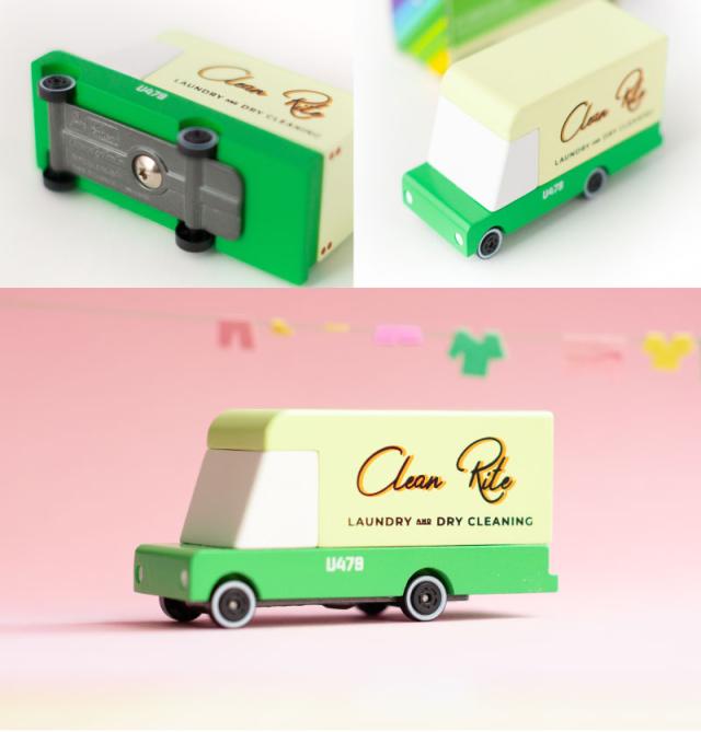 ニューヨーク・ブルックリン発 Candylab(キャンディラボ) Laundry Van CND U479 トイカー ミニカー 洗濯 ランドリーカー クリーニング 子供 木製 おうち遊び ジオラマ 海外 輸入 玩具 男の子 木のおもちゃ おしゃれ