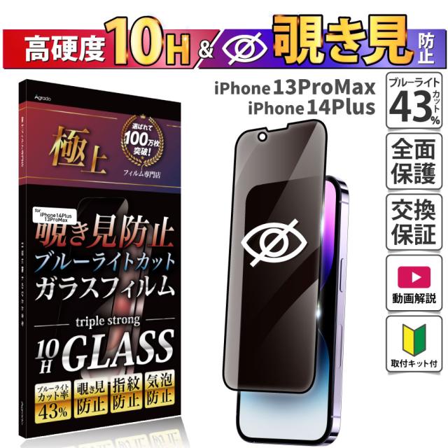 iPhone 14 Plus / 13 ProMax ガラスフィルム 覗き見防止 ブルーライトカット かんたん 安心 プライバシー 全面保護 スマホフィルム 強化ガラス のぞき見防止 保証 アイフォン アイホン おまけ付き 防水ケース ポイント消化 除き見