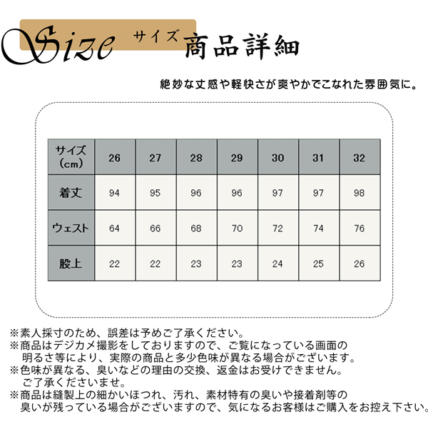 ※商品は縫製上の細かいほつれ、汚れ、素材特有の臭いが残っている場合がございますので、気になるお客様はご購入をお控え下さい。