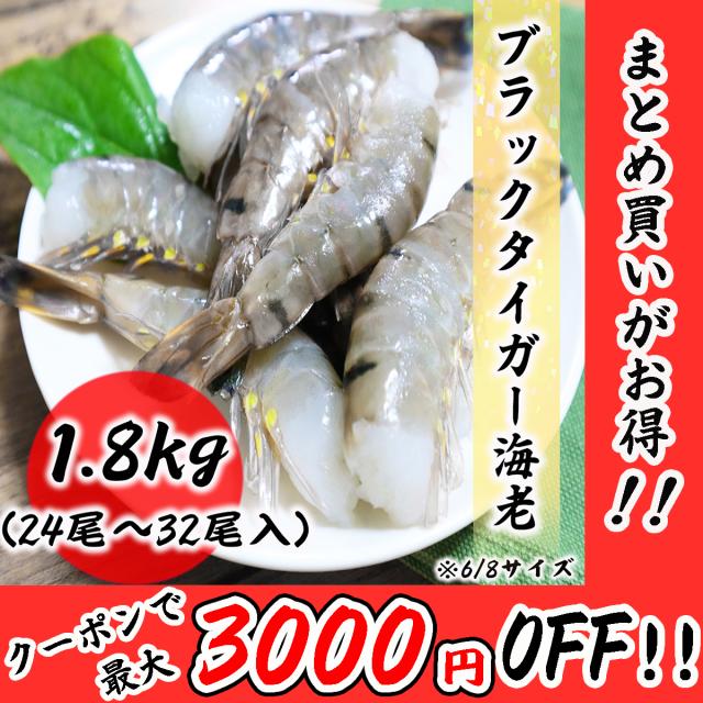 無頭海老 6/8 超特大サイズ ブラックタイガー 業務用 4ポンド 約1.8kg BT エビ お取り寄せ 食品 冷凍便 プロ愛用
