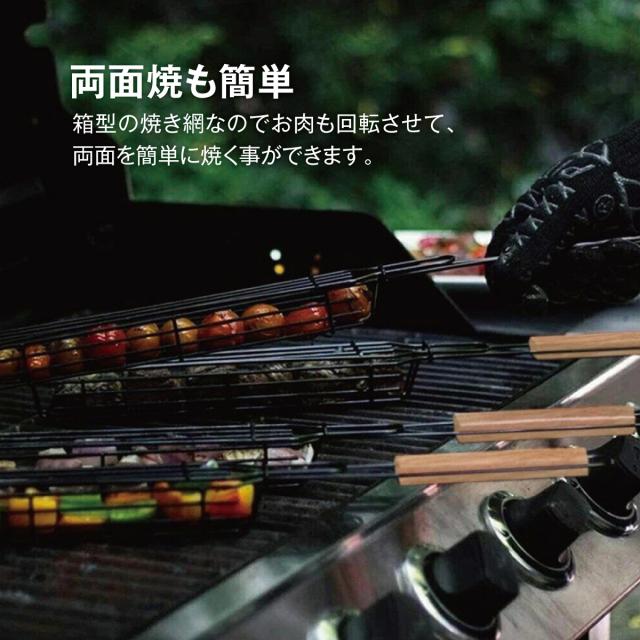 【両面焼きも簡単】箱型の焼き網なのでお肉も回転させて、両面を簡単に焼くことができます。