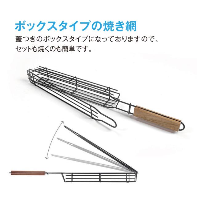 【ボックスタイプの焼き網】蓋付きのボックスタイプになっておりますので、セットも焼くのも簡単です。