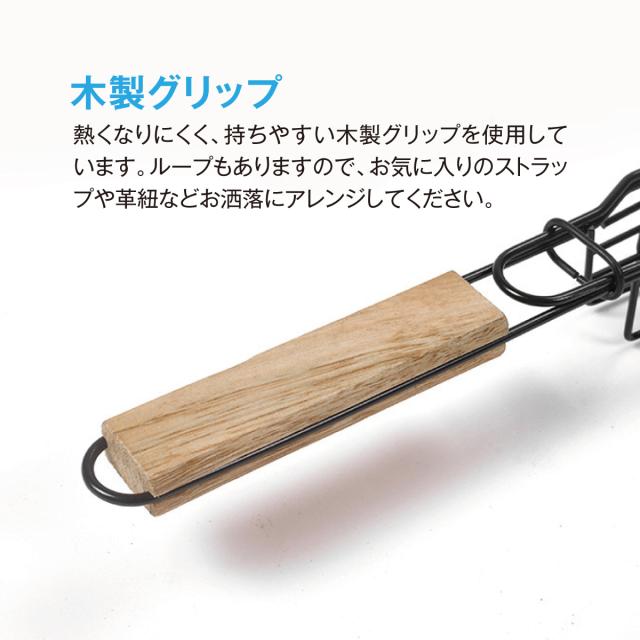 【フッ素樹脂加工】網部分の表面は、フッ素樹脂加工がされており焦げにくい焼き網になっています。