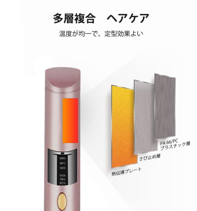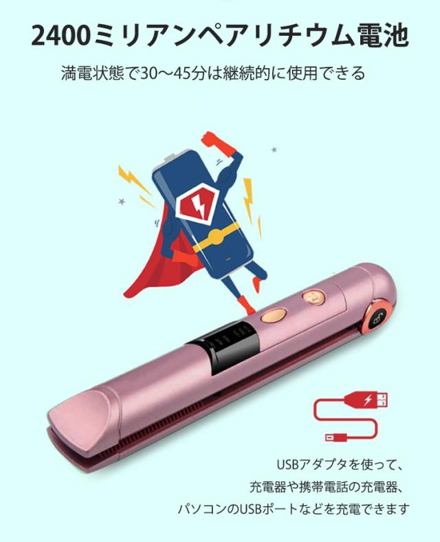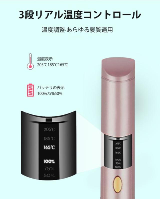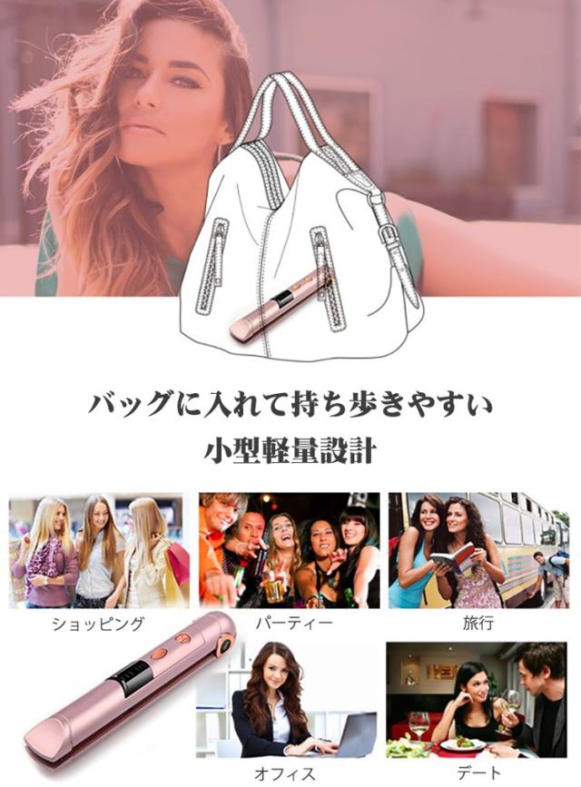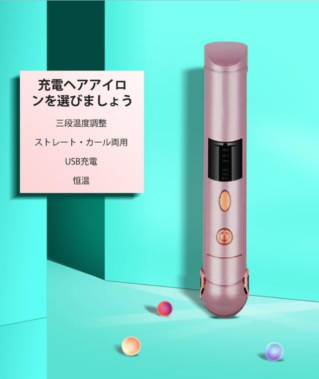 コードレス ヘアアイロン ミニ 充電式 前髪 ストレート カール 2way 海外対応 携帯 3段階温度 コンパクト