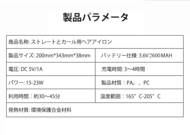 セット内容:2Wayヘアアイロン、USB充電ケーブル、収納袋
