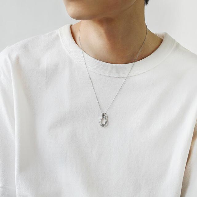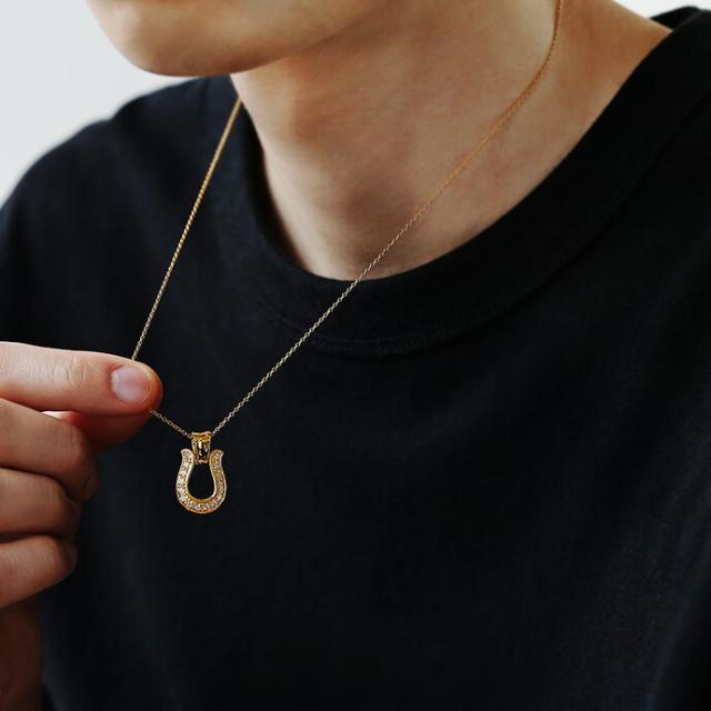 ■商品名:ジルコニア カーブ ホースシュー ペンダント ネックレス メンズ シルバー ゴールド ステンレスチェーン付属 シルバー925 アクセサリー 馬蹄 シルバーペンダント
