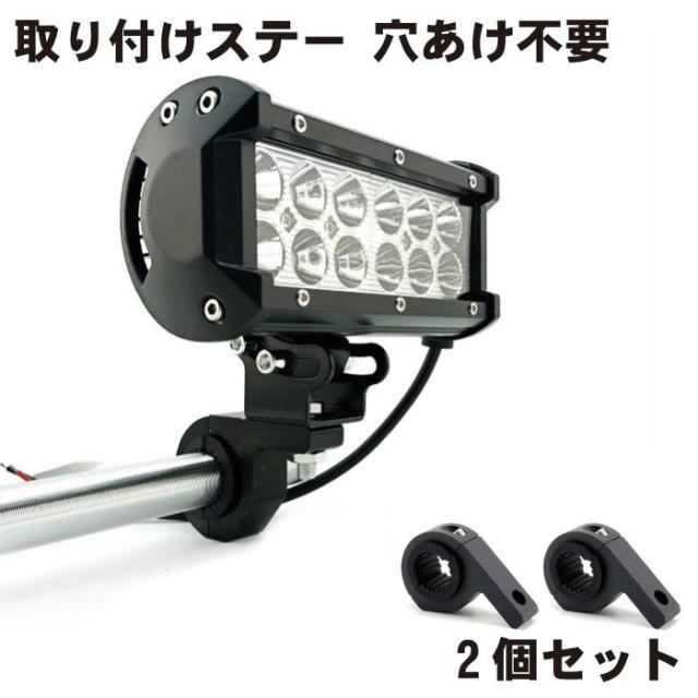 【2個セット】バイクステー 取り付けステー ステー 穴あけ不要 取り付け簡単 フォグランプ 作業灯 前照灯 補助灯 ブラケット スタンド パイプ 挟み込み汎用 送料無料