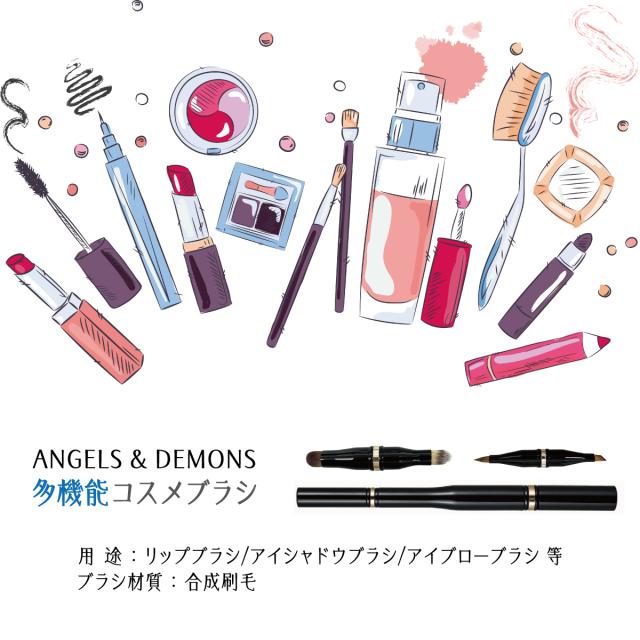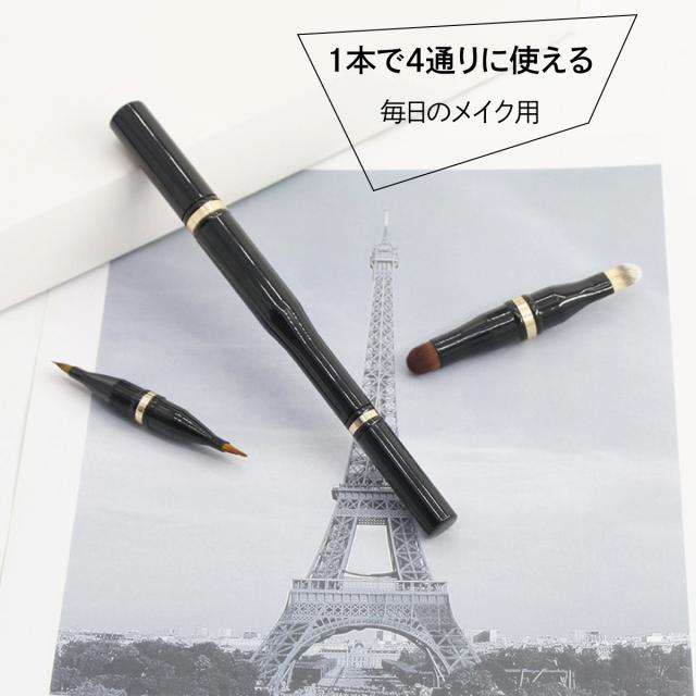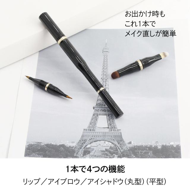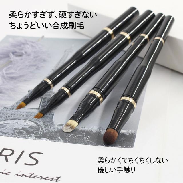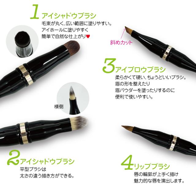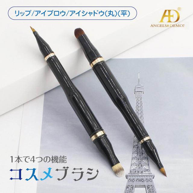 メイクブラシ リップ アイブロー アイシャドー 丸 平 ブラシ 化粧 携帯用 1本で4種類 メイク cos-br-02