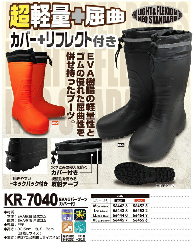 喜多 KR-7040 BLK サイズ M ブラック ブーツ 長靴 EVAラバーブーツ 超軽量+屈曲 カバー+リフレクト付 KITA キタ 送料無料