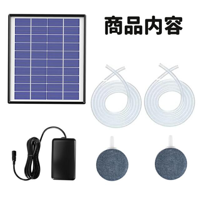・商品内容:ソーラーパネル×1、エアポンプ×1、ホース×2、エアーストーン×2