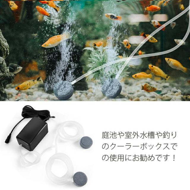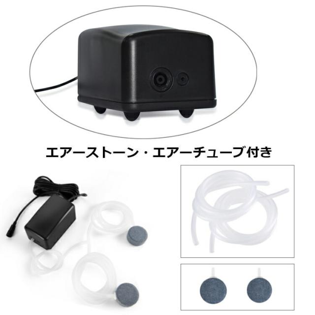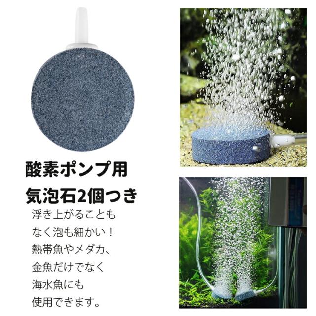 エアーストーン2個付属しており、同時に2つの水槽で使用することもできます。