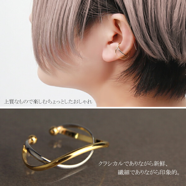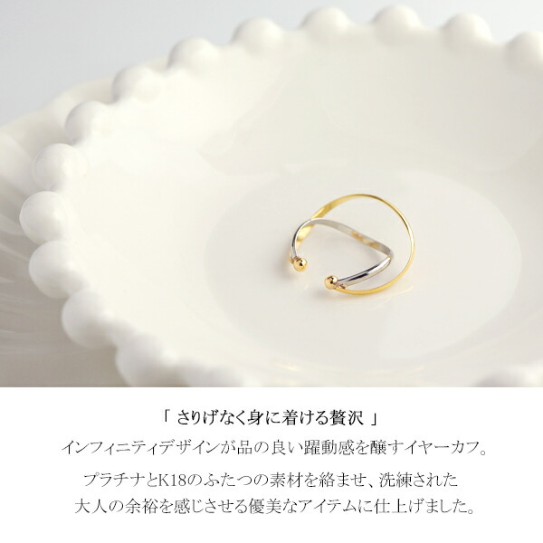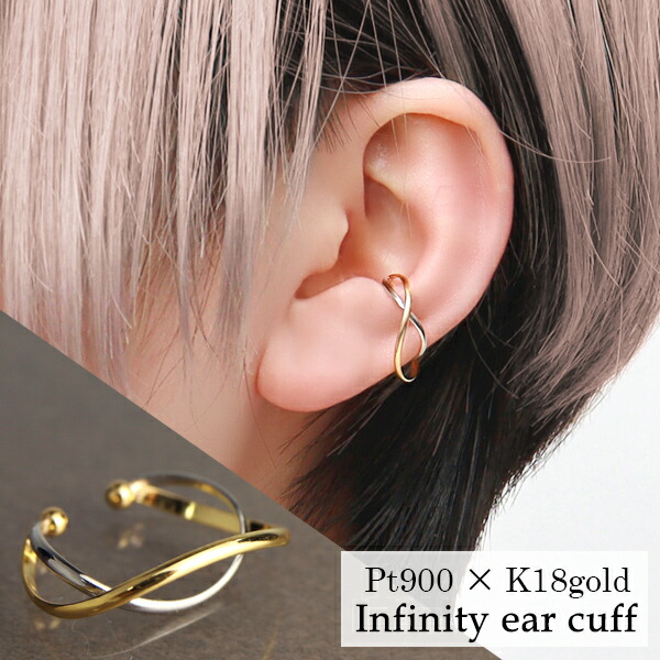 シンプル さりげない プラチナ900 K18ゴールド イヤーカフ 1P 片耳用 Pt900 18金 18K ノンホールピアス ピアス イヤリング イヤークリップ