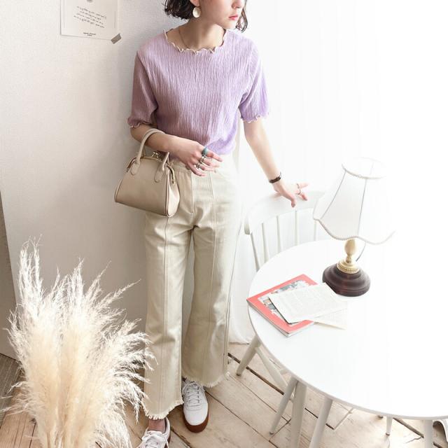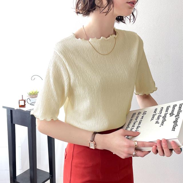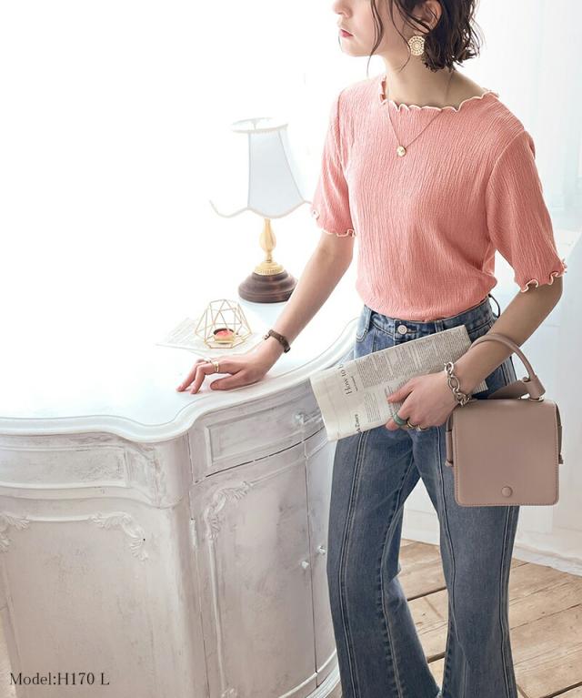 ヘビロテしたくなる、5分袖シャーリングトップス。
