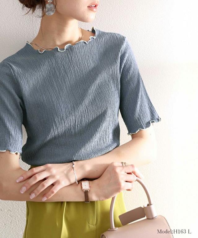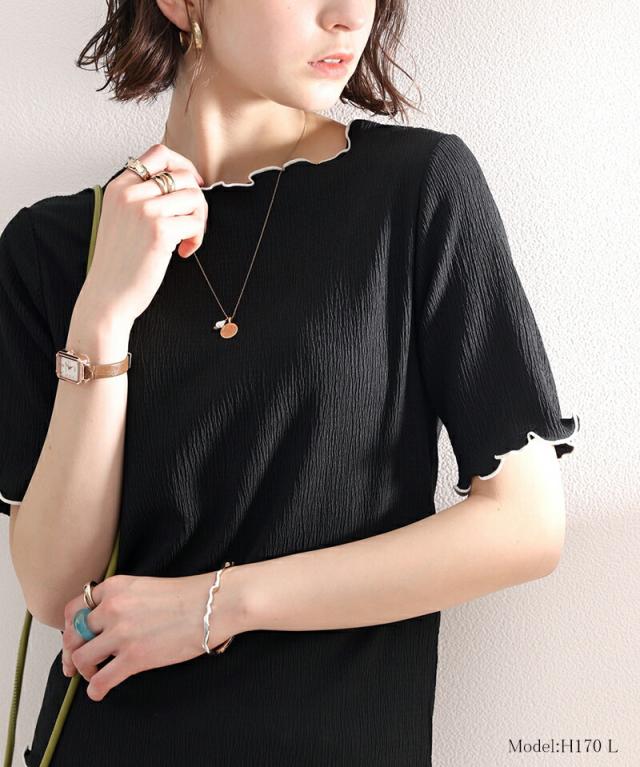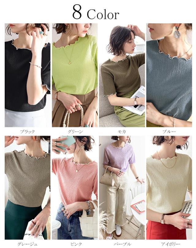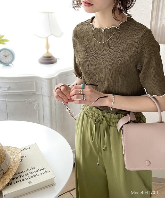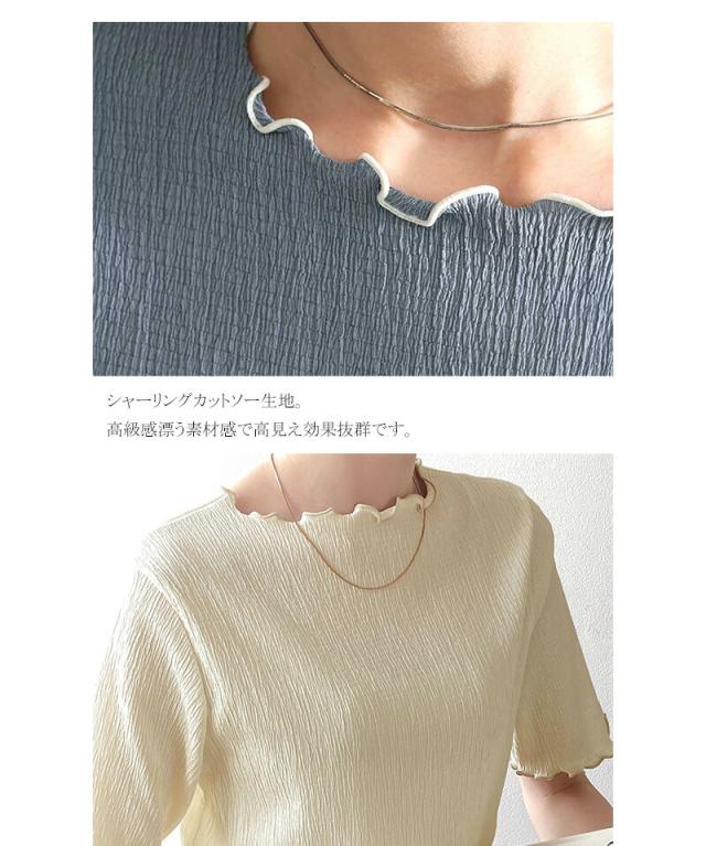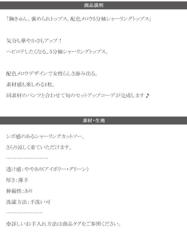 ★胸きゅん、褒められトップス。配色メロウ5分袖シャーリングトップス★