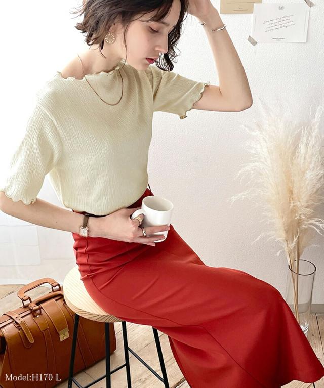 春新作 クラシカルエルフ レディース 体型カバー 大きいサイズ トップス tシャツ 配色 メロウ 5分袖 シャーリング カットソー ce0420077