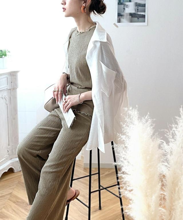 同素材のパンツと合わせて旬のセットアップコーデが完成します♪