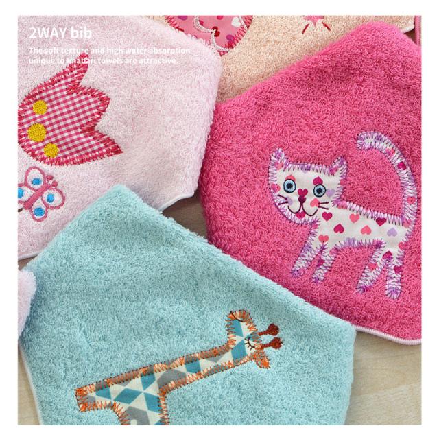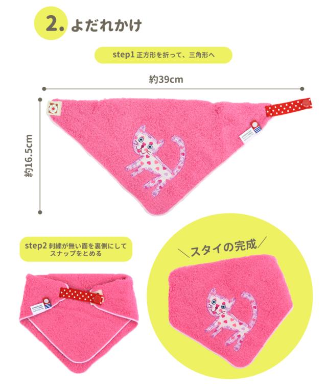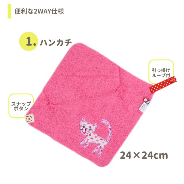 スナップを留めるとスタイ、広げるとタオルハンカチに変身!