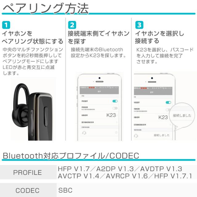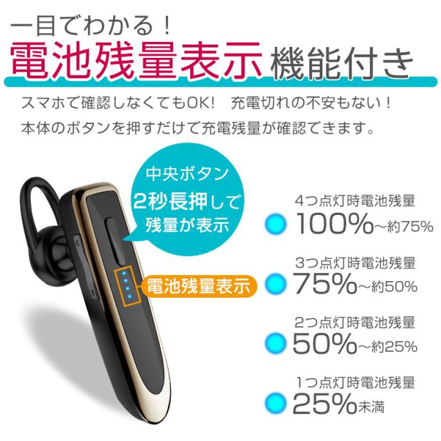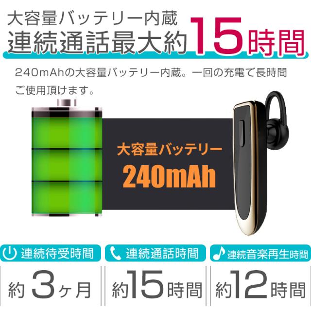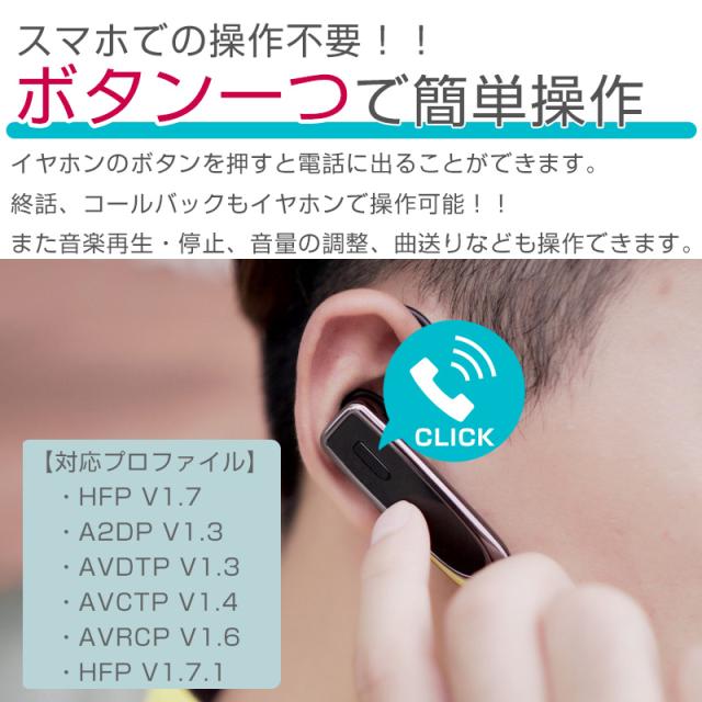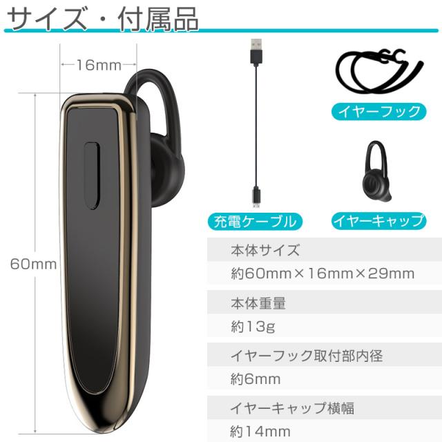 イヤホン ワイヤレス 片耳 bluetooth 5.0 マイク付き ヘッドセット iPhone スマホ android タブレット 大容量バッテリー内蔵