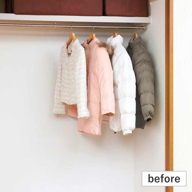 ハンガーに吊るしたまま掃除機で圧縮袋の空気を抜くことができる、衣類圧縮袋です。目安として衣類圧縮パック1枚あたりダウンジャケット2枚程度圧縮可能なので、衣替えの時期に大活躍間違いなし!厚手の衣類もクローゼット内で場所を取らずに収納できます。