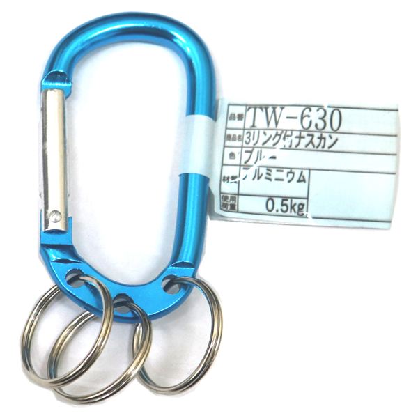 【メール便可】WAKI 和気産業 3リング付ナスカン ブルー TW-630