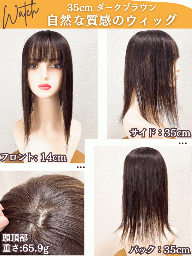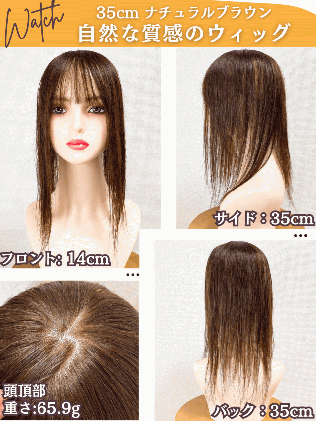 部分ウィッグ ヘアピース ウィッグ 女性 レディース 人毛100% かつら トップカバー トップウィッグ セミロング 35cm トップピース ストレート 医療用 ウイッグ 白髪 脱毛 人毛ウィッグ 自然 つむじ 頭頂部 白髪隠し つむじ付き カバーウィッグ Luce brillare ルスブリラーレ