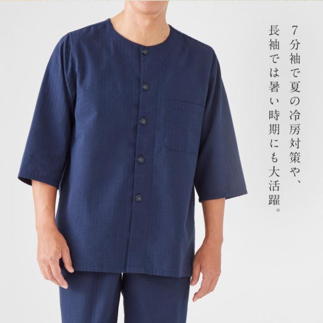 袖丈は7分袖で、夏の冷房対策、春や秋は快適。長袖では暑いという時期に重宝します。