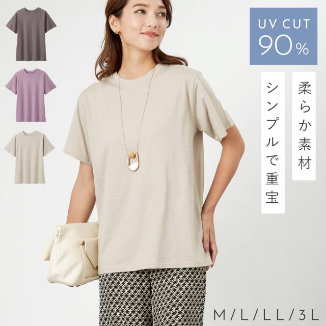 tシャツ レディース 半袖,Tシャツ ゆったり レディース,UVカット Tシャツ,Tシャツ,tシャツ,半袖,トップス,カットソー,吸水速乾,吸水,速乾,uv,uvカット,紫外線カット,日焼け対策,日焼け防止,クルーネック,綿100%,綿100,綿,コットン,肌に優しい,敏感肌,春夏,春,夏,M,L,LL,3L,大きいサイズ,ゆったり,大きめ,レディース,女性,大人,シニア,高齢者,ミセス,ミセスファッション,30代,40代,50代,60代,70代,おしゃれ,お洒落,オシャレ,かわいい,可愛い,シンプル,カジュアル,ベージュ,ライラック,パープル,紫,アッシュグレー,ニュアンスカラー,くすみカラー,