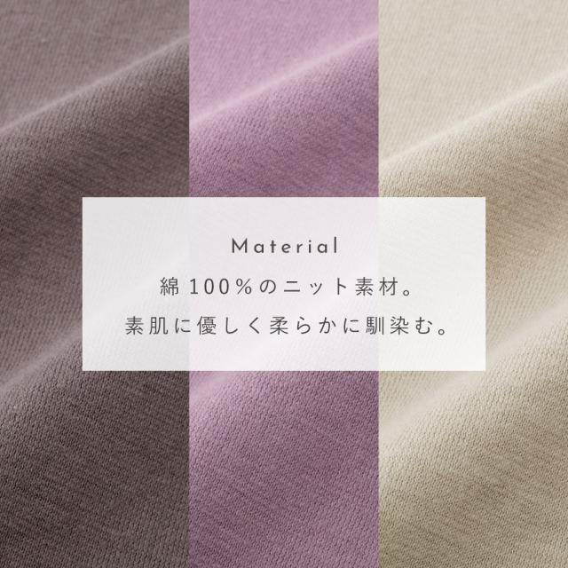 綿100%のニット素材。素肌に優しく身体に柔らかに馴染みます。洗っても型崩れしにくい編み方で仕上げているので、夏の汗ばむ季節に嬉しいです。