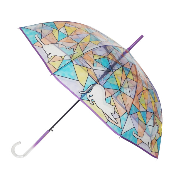 ステンドグラス傘 58cm ねことさんかく パープル JK-140-09 アンシャンテ ビニール傘 サントス ジャンプ長傘 8本骨 レディース 女性 おしゃれ プレゼント ギフト