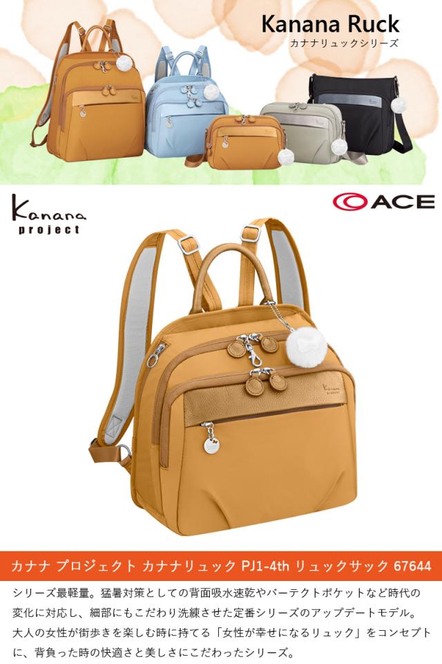 リュック エース カナナプロジェクト カナナリュック PJ1 4th 7L 490g レディース 軽量 撥水 抗菌 吸水速乾 テフロン加工 セーフティロック付き 旅行 おしゃれ 67644