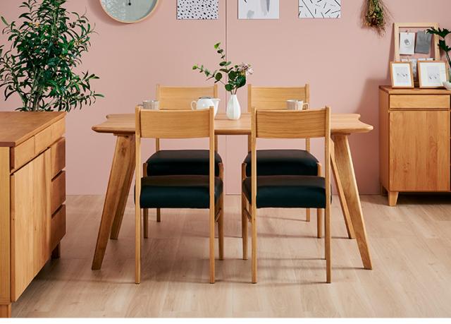 [テーブル]天板:オーク無垢集成材/脚:ラバーウッド集成材