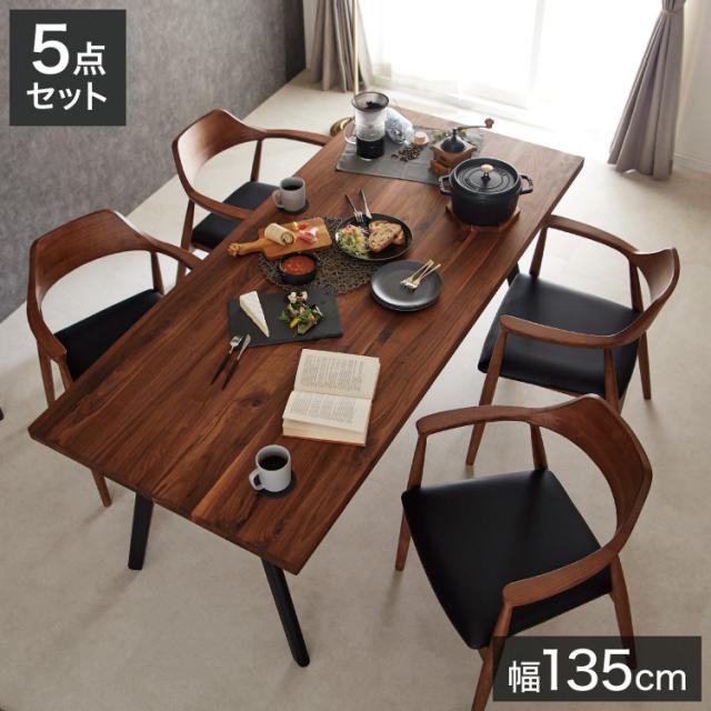 ダイニングセット 4人掛け 5点セット 幅135 オーク無垢材 ダイニングテーブルセット 合皮 天然木 ダイニングチェア 食卓 テーブル 椅子 いす(代引不可)【送料無料】