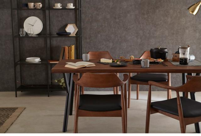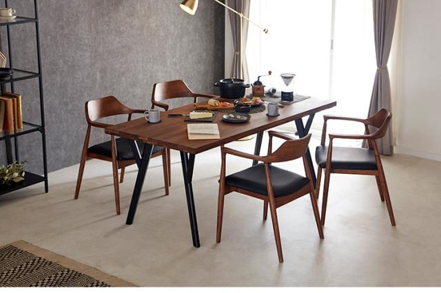 [テーブル]天板:ウォールナット無垢集成材/脚:ラバーウッド無垢