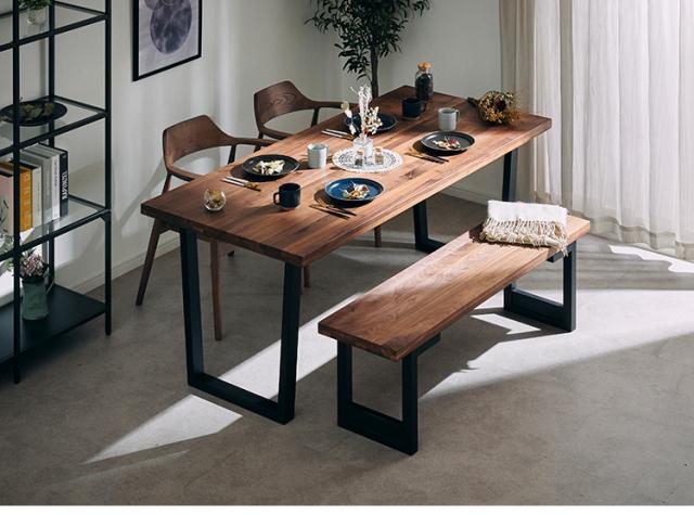[ベンチ]座面:ウォールナット無垢集成材/脚:ラバーウッド無垢
