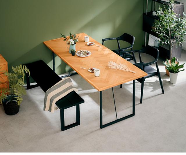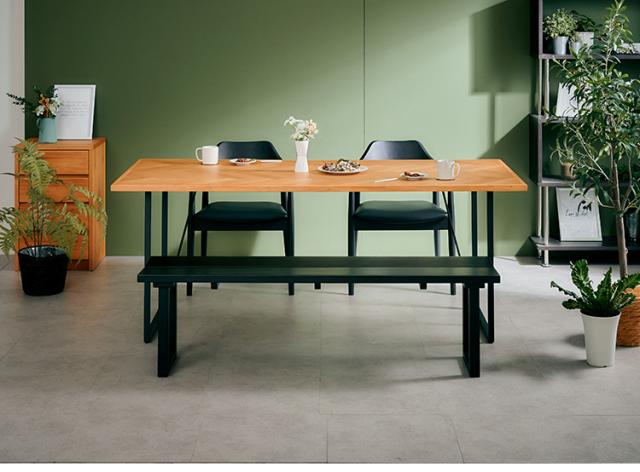 [テーブル]天板:突板・ラバーウッド無垢/脚:アイアン