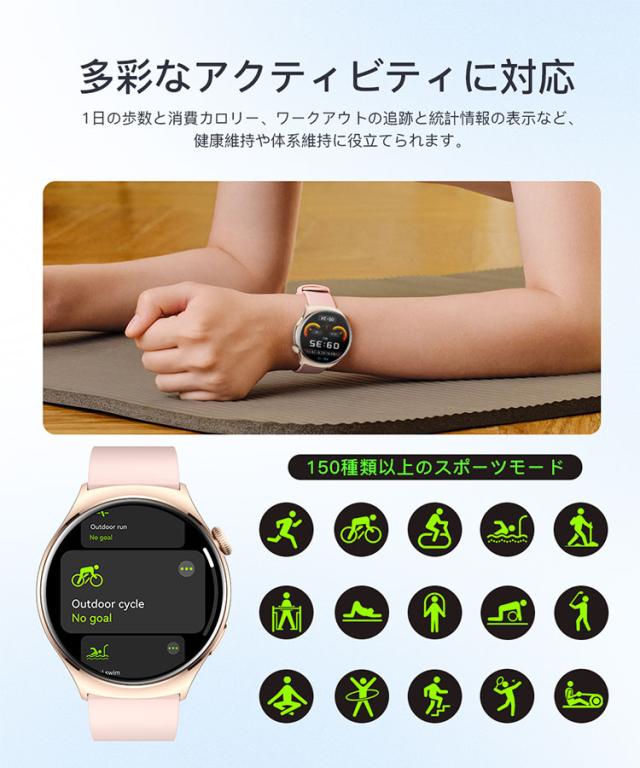 スマートウォッチ 日本製センサー 1.43インチ 男女兼用 新製品 Bluetooth通話対応 心拍数 血中酸素 ストレスレベル スポーツ記録 時計 おしゃれ ヘルスモニタリング IP68防水 音楽再生 メール アプリ通知 天気表示 スマートウォッチ女性用