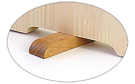 回転式のスタンドを回すとまな板を立てて保存することができます。 風通しを良くするため、少し隙間が出来るよう木口にニッケル製鋲がついています。 |