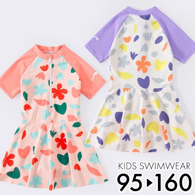 北欧風 の ナチュラル な 絵柄 が 可愛い オールインワン キッズ水着 キッズ用 海 プール ビーチ リゾート 海水浴 ジュニア ガール パステル スポーティー 紫外線対策 UV対策