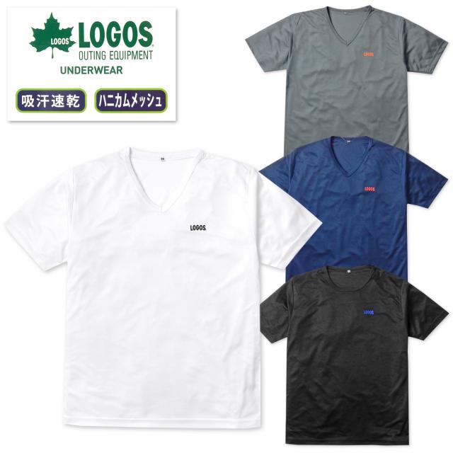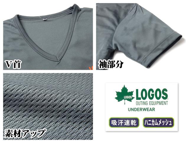 【送料無料】紳士 メンズ 吸汗速乾 半袖 V首 Tシャツ インナー LOGOS ハニカムメッシュ 通気性 軽量 肌着 yg-1243【メール便対応】