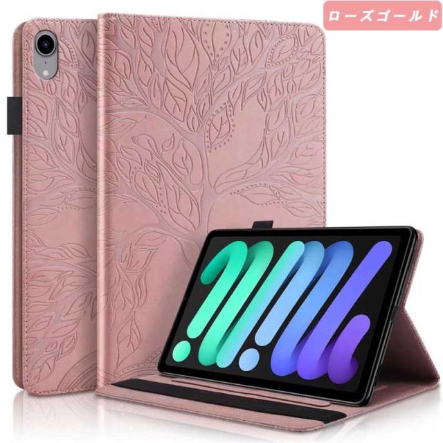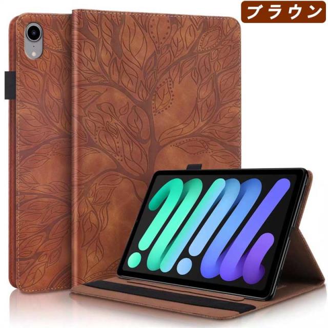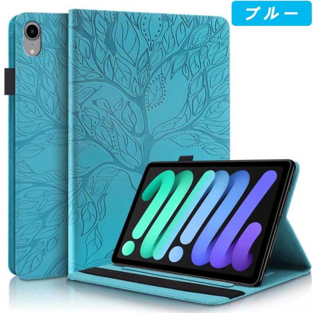 ナチュラルな樹の模様を型押しした手帳型タブレットケースです。