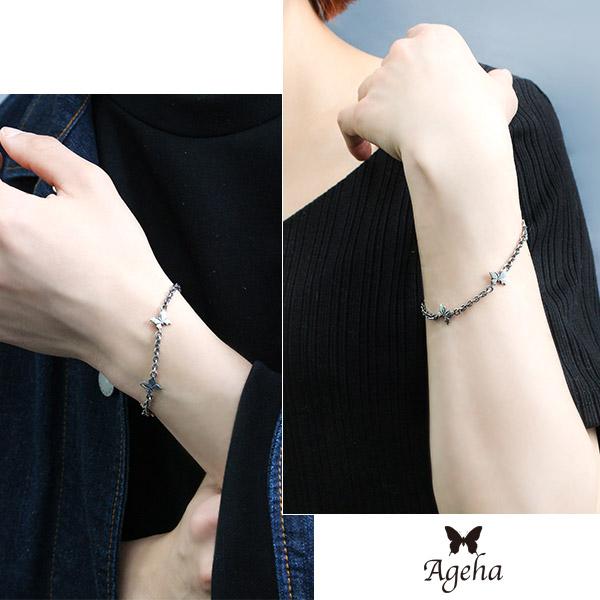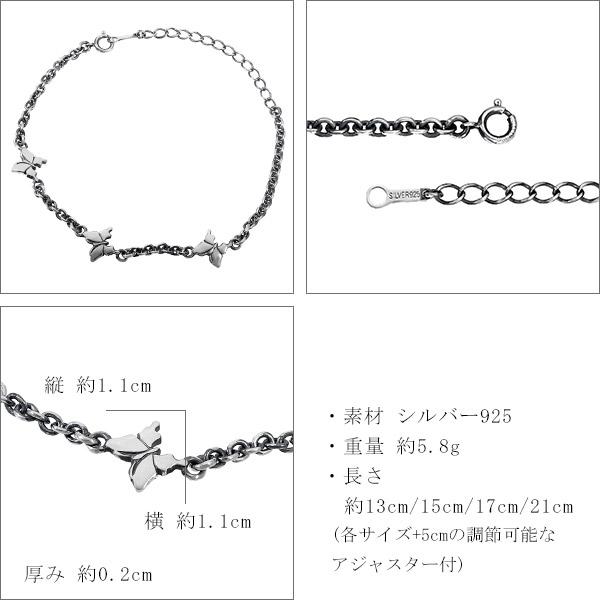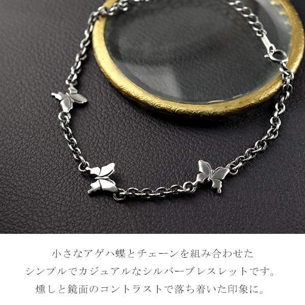 シルバーアクセサリー レディースアクセサリー スターリングシルバー シルバーブレスレット アゲハ 蝶 モチーフ 蝶々 ちょうちょ バタフライ アゲハチョウ 揚羽蝶 胡蝶 虫 昆虫 アクセサリー いぶし デザインチェーン チェーンブレスレット あずき チェーン かわいい 可愛い