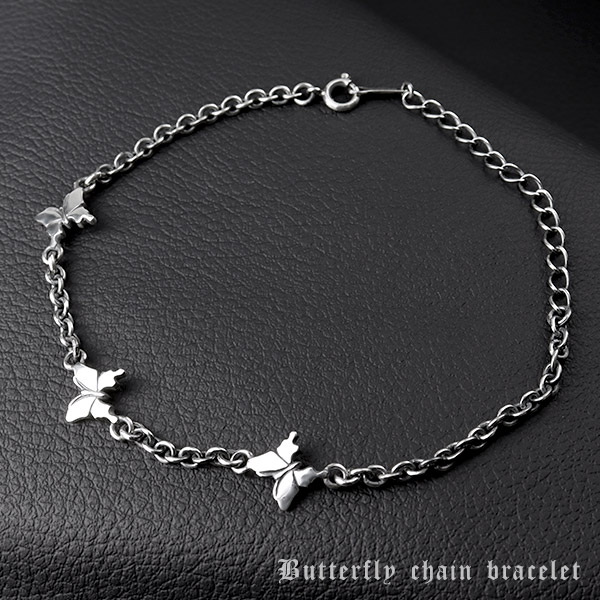 小さなアゲハ蝶とチェーンを組み合わせたシルバーブレスレットです。