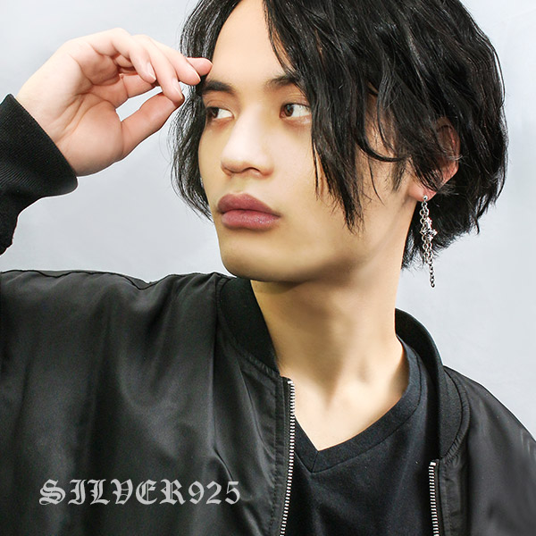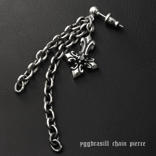 逆十字とチェーンを組み合わせたシルバーピアスです。