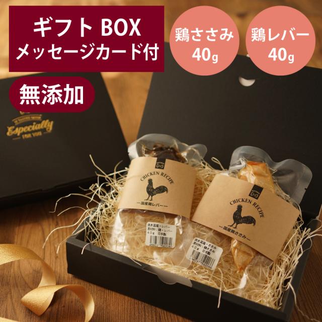 ギフトナー 国産 鶏ささみ 40g 鶏 レバー 40g セット プレゼント GIFTNER 犬 猫 おやつ オリジナルギフトBOX付き 鶏 無添加 選べるカード付き ギフトBOX付き